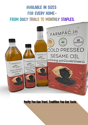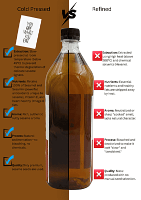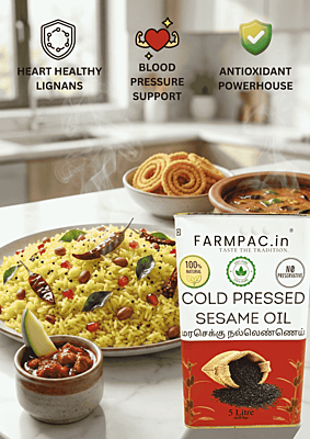 Experience the authentic taste of tradition with our Wood Pressed Sesame Oil. Extracted using the ancient Chekku method with natural Cane Jaggery, this oil retains its rich nutty aroma and essential nutrients. 100% natural, chemical-free, and perfect for healthy daily cooking just like the old days