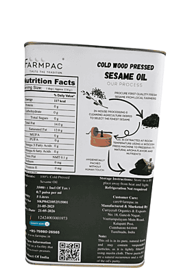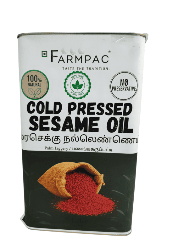 Cold Pressed 5 Litre-Sesame Oil (Tin with Anti-Spill Spout) (Karupatti)/ மரச்செக்கு நல்லெண்ணெய்(கருப்பட்டியுடன் ஆட்டியது)-5 லிட்டர்
