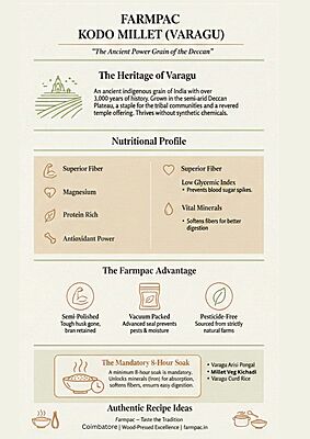 Rinse the grains twice, then soak for at least 8 hours. Cook using 2.5 parts water (ideally the same soaking water for maximum nutrition). Perfect for healthy Pongal, Pulao, or as a daily rice substitute.