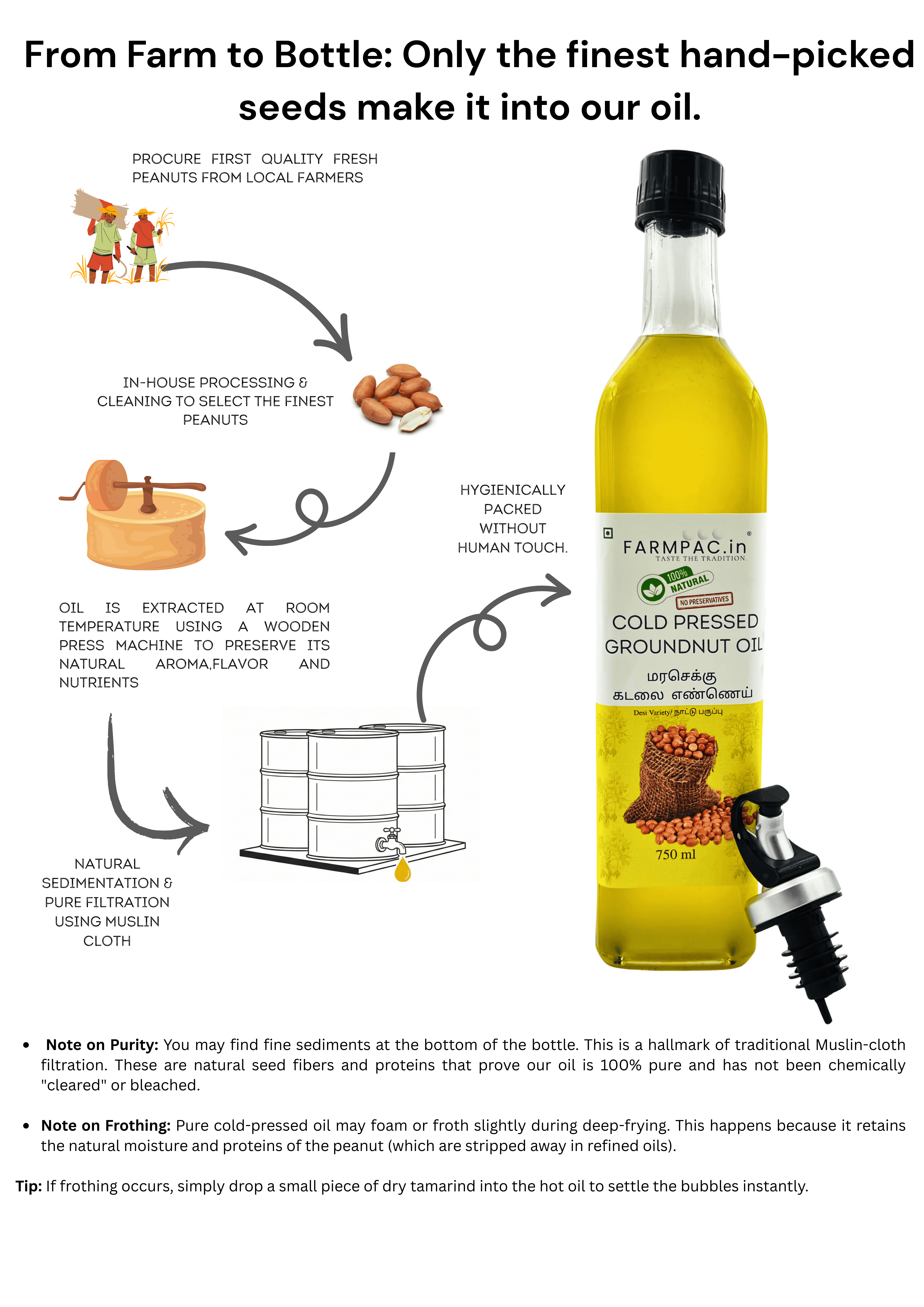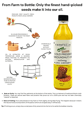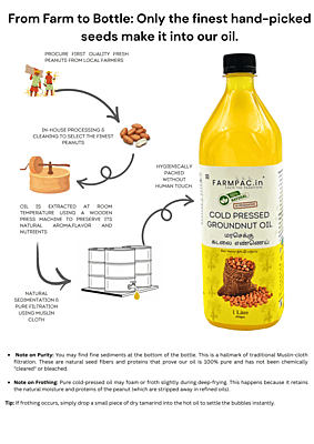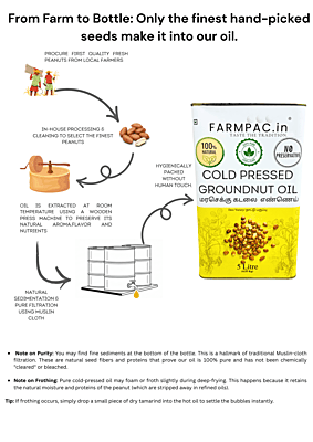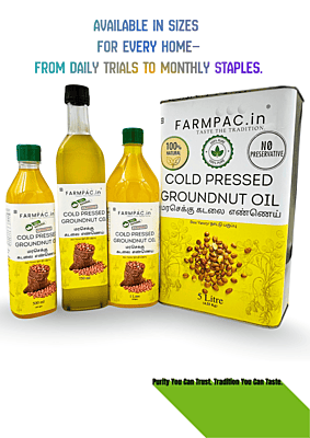 Our Native Variety Groundnut Oil is a tribute to the authentic flavors of the past. Extracted from hand-selected, traditional 'Desi' peanut seeds using the slow Wood Pressed (Marachekku) method, this oil is prized for its intense nutty aroma and rich golden texture. Higher in natural nutrients and free from any hybrid blending, it is the elite choice for traditional South Indian cooking.