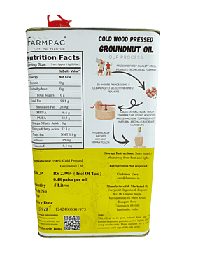 Cold Pressed 5 Litre-Groundnut Oil (Desi)(Tin with Anti Spill Spout) / மரச்செக்கு கடலை எண்ணெய்(நாட்டு கடலை பருப்பு) - 5 லிட்டர்