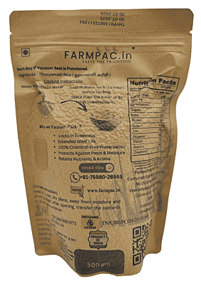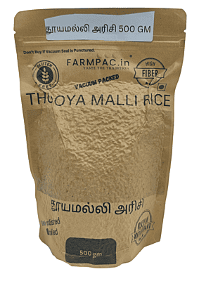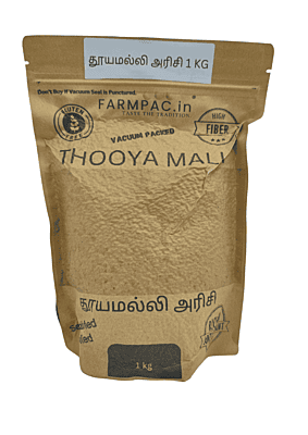 - Advanced Vacuum Packaging: To preserve the pristine quality of Thooyamalli, we use the protective 'brick-seal' vacuum method. By removing all oxygen, we naturally maintain the rice's natural aroma and freshness without the use of toxic chemical fumigants.